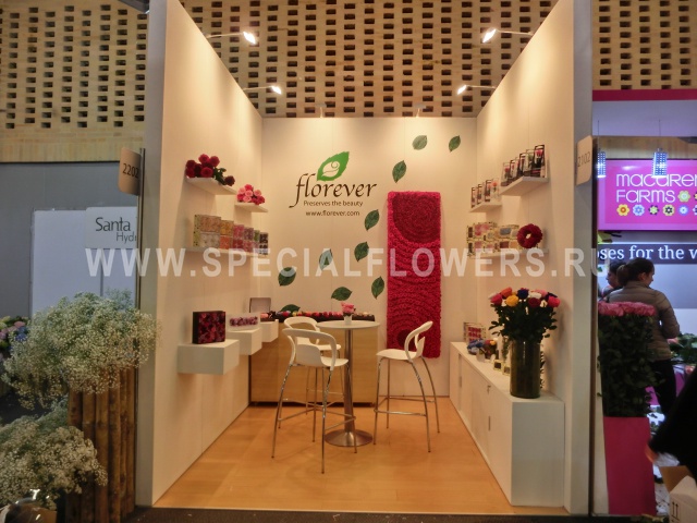 Именно поэтому производство стабилизированных цветов высокого качества под брендом Florever находится в Колумбии и ежегодно компания принимает участие в выставке PROFLORA 2015 с целью популяризации стабилизированных цветов и инновационного творчества.